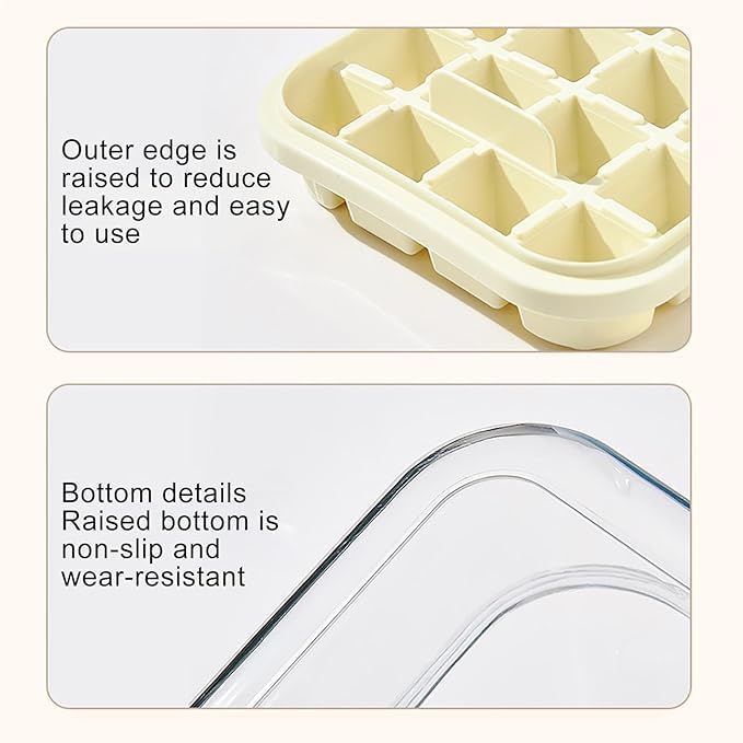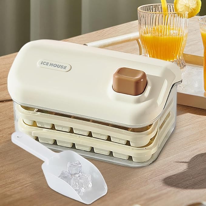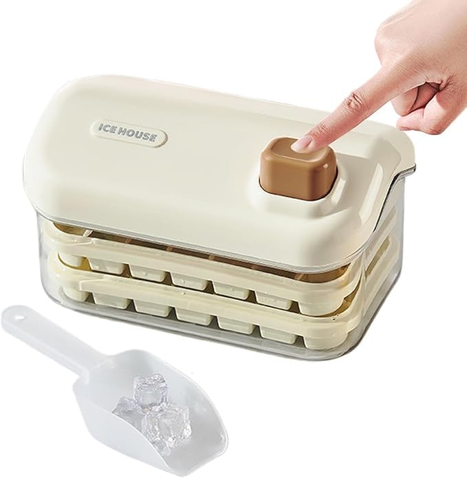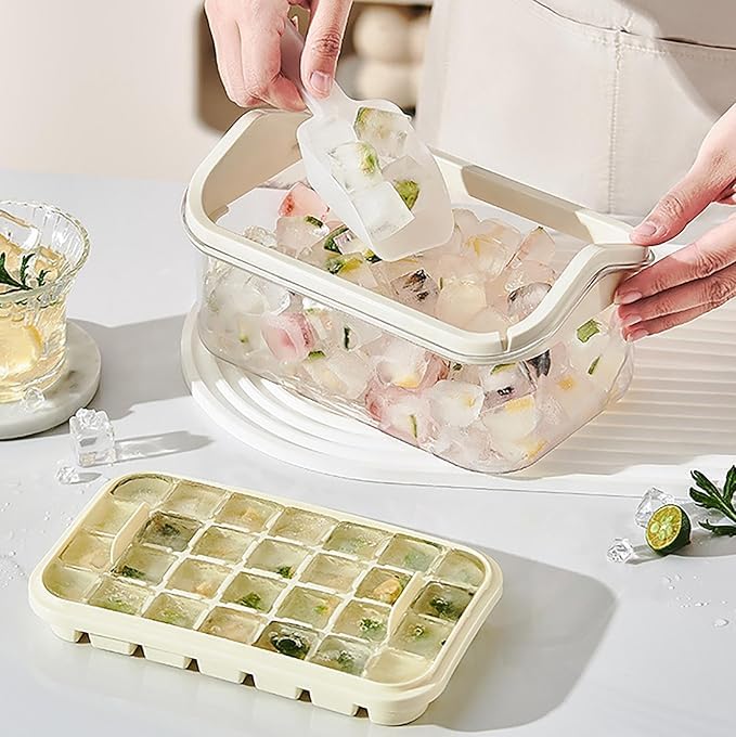 Generic - Ice Tray with Lid and Bin, Ice Maker Mold for Freezer with Shovel, Easy-Release Food-Grade Bar Accessories use to Tequila, Cocktails, Whiskey, Cold Drinks (Creamy)