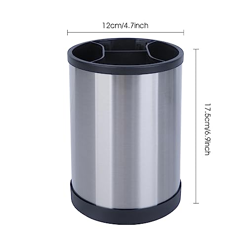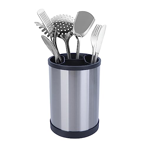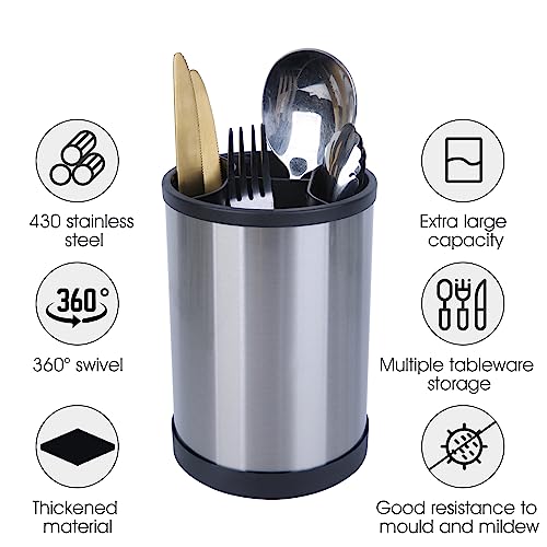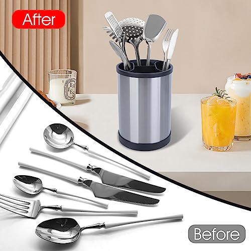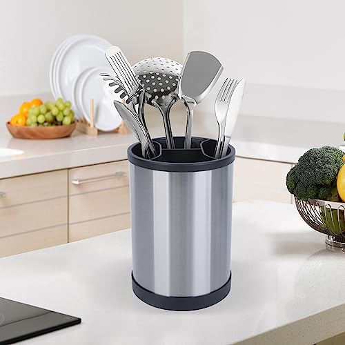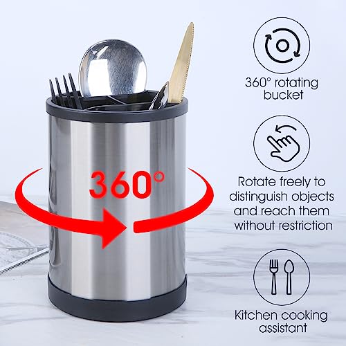 Iceten - Rotating Black Utensil Holder, Large Retro Cylindrical Cutlery Holder with Non-Slip Base Stainless Steel Kitchen Utensils Holder Large Capacity Spoon Holder Utensil Pot(Silver & Black )