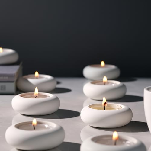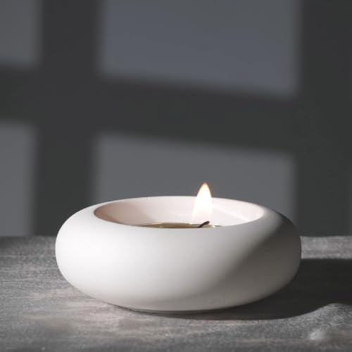 ICNBUYS - Handmade Decorative Pebble Tealight Candle Holders Set of 8 - Handcrafted Home Decor Accent for Calming Earthy Aesthetic Cement White Diameter 2.6 inches