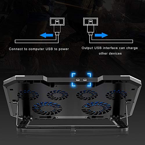 - [قوية وهادئة للغاية وعالية الكفاءة] تساعد مروحتان كبيرتان و4 مراوح صغيرة على تدوير الحرارة الزائدة في اللاب توب الخاص بك والتبريد بسرعة دون إحداث ضوضاء.