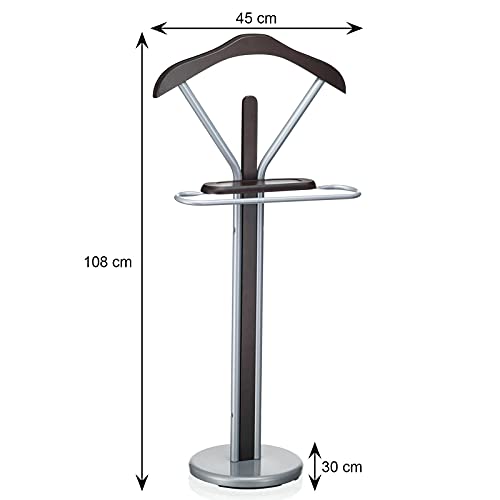 IDIMEX - IDIMEX Fabio Women's Valet Stand with Clothes Hanger, Trouser Hanger, Small Shelf in Brown/Aluminium