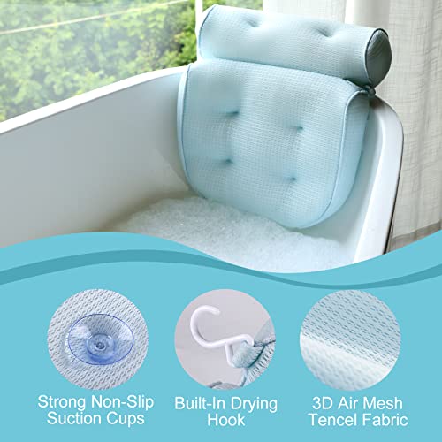 Idle Hippo - Idle Hippo Bath Pillow Organic Tencel Bathtub Pillow - Upgraded 3D Air Mesh Bath Pillow with Head, Neck, Back and Shoulder - Ultra Soft and Quick Dry Spa Pillow for Bathtub