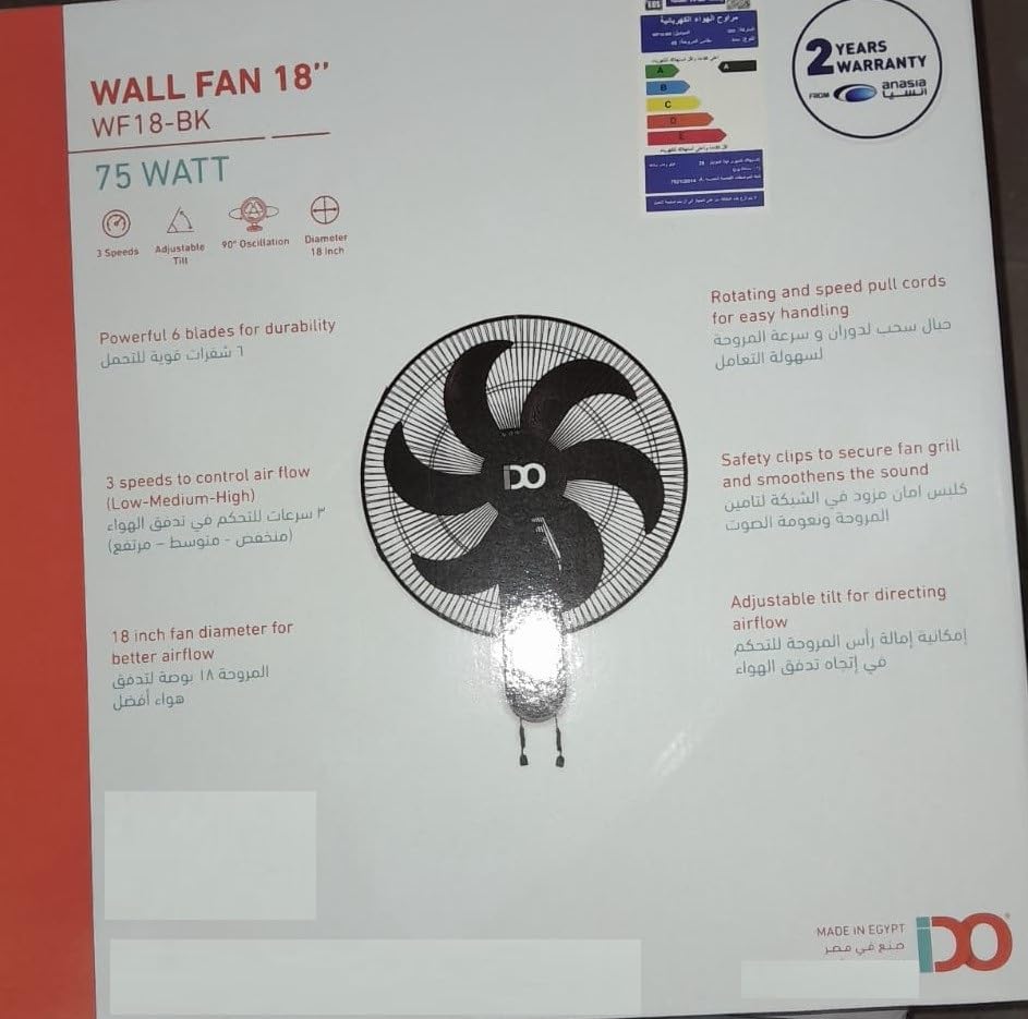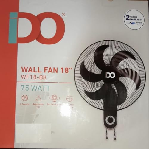 IDO - iDo Wall Fan - 18 Inch - 75 Watt - 3 Speeds - 6 Strong Blades - Black - WF18-BK
