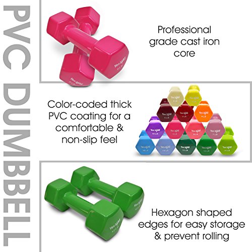 - دامبل مرمز بالألوان مع مقبض مانع للانزلاق: طلاء ملون من بلاستيك بي في سي لسهولة التعرف عليه، يضمن قبضة غير قابلة للانزلاق ويوفر الحماية ضد مسامير القدم