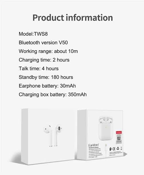 Generic - سماعة داخل الأذن بادز TWS8 من IEarldom, مزدوجة بإلغاء الضوضاء النشط وإلغاء البيئية مع تقنية خفض للاستماع , سماعات للرأس ستيريو - أبيض
