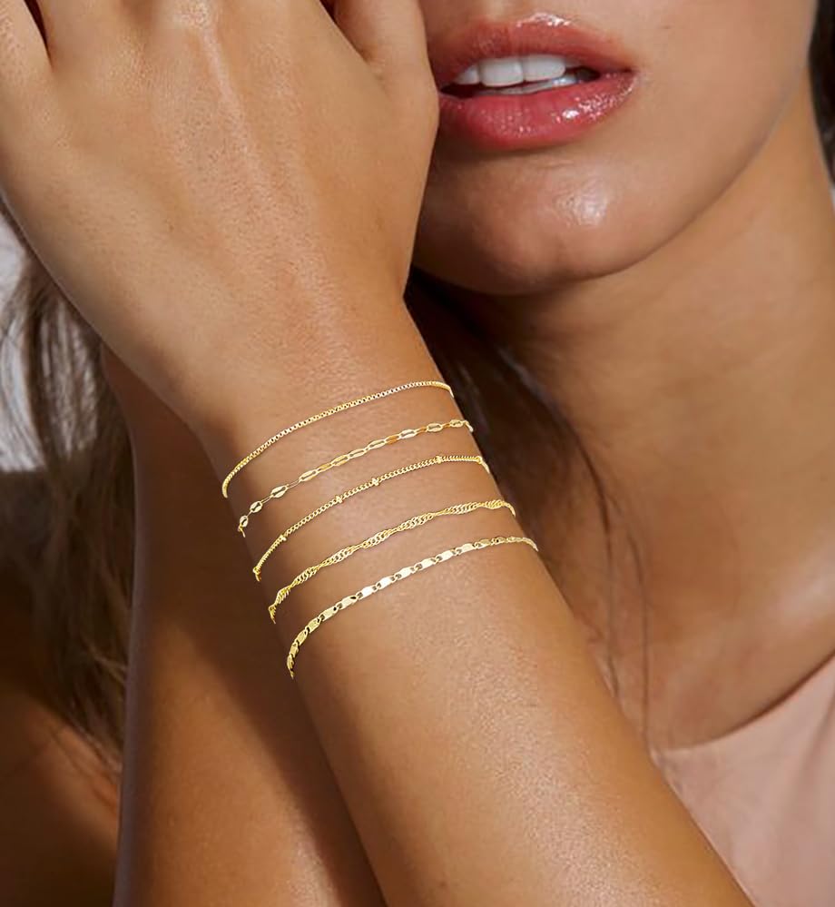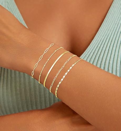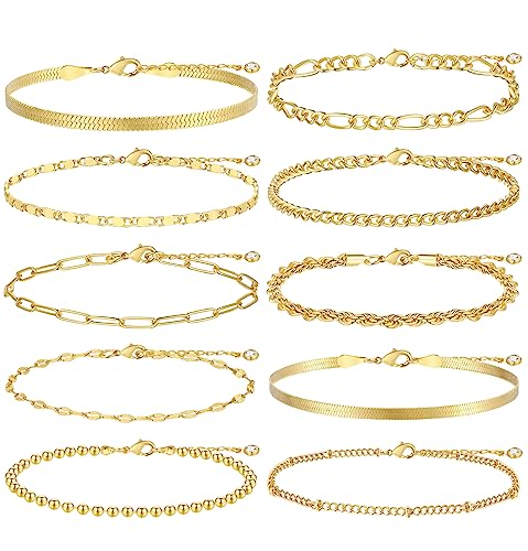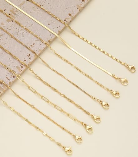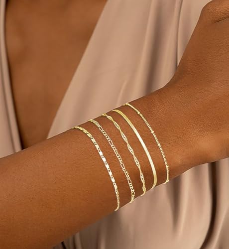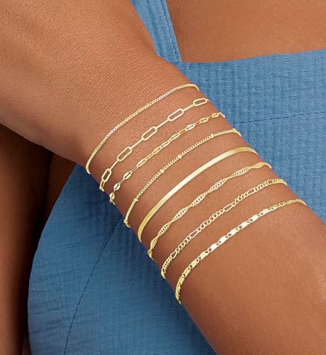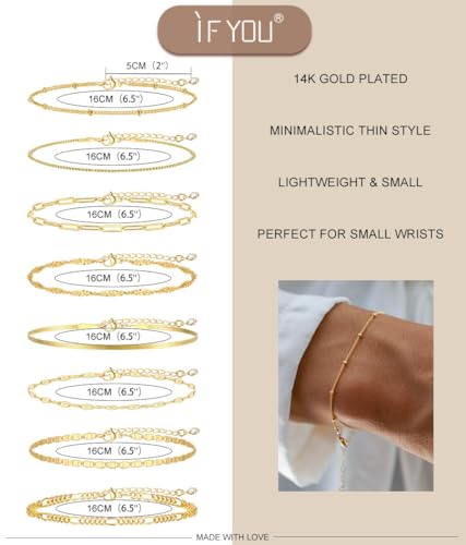 iF YOU - اف يو اساور ذهبية للنساء مجموعة انيقة مطلية بالذهب عيار 14 قيراط قابلة للتكديس عصرية سلسلة متعددة الطبقات مجوهرات لطيفة عبوة من 8 قطع - ذهبي