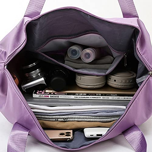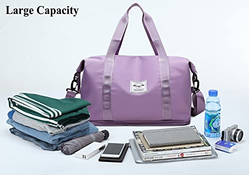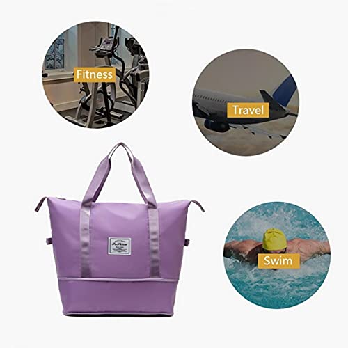 IFA - IFA Women Expandable Travel Duffel Bags, Men Sports Tote Gym Bag, Foldable Weekender Overnight Shoulder Bag, Light purple, One Size