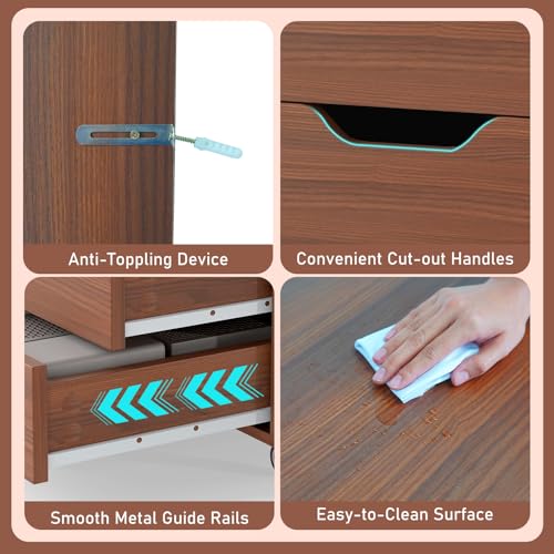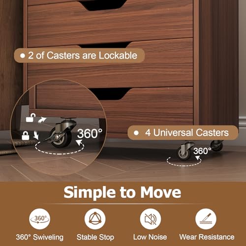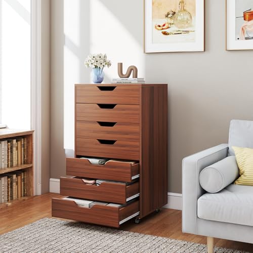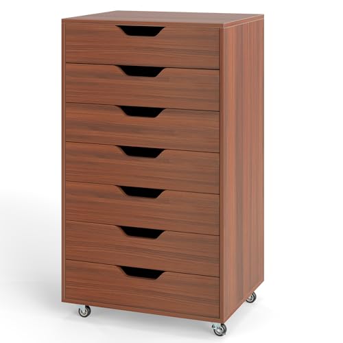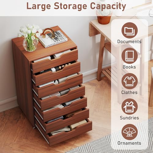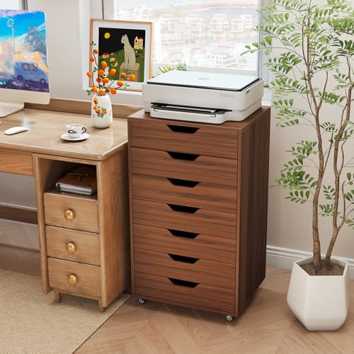 IFANNY - 7 Drawer File Cabinet, Mobile Filing Cabinet w/Universal Wheels, Wood Printer Stand with Storage, Rolling File Cabinets for Home Office, Living Room, Small Spaces (Walnut, 7 Drawers)
