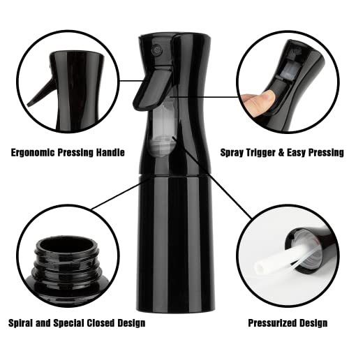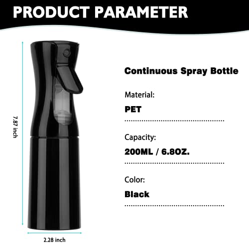 IFDGCTK - Continuous Spray Bottle 6.8 OZ/200 ML, Mister Spray Bottle For Hair, Fine Mist Water Spray Bottle for Salons, Hairstyling, Plants, Skin Care, Cleaning (Black)