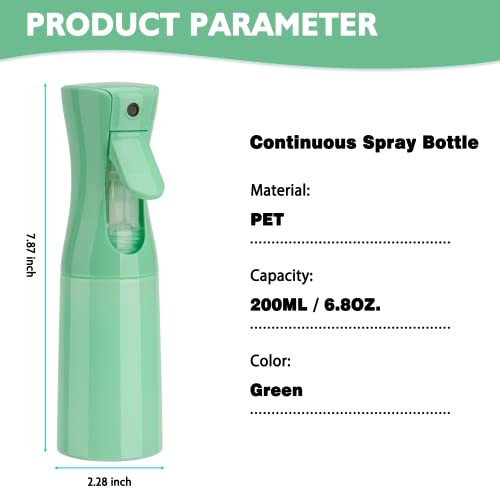 IFDGCTK - Continuous Spray Bottle 6.8 OZ/200 ML, Mister Spray Bottle For Hair, Fine Mist Water Spray Bottle for Salons, Hairstyling, Plants, Skin Care, Cleaning (Green-2 Pack)