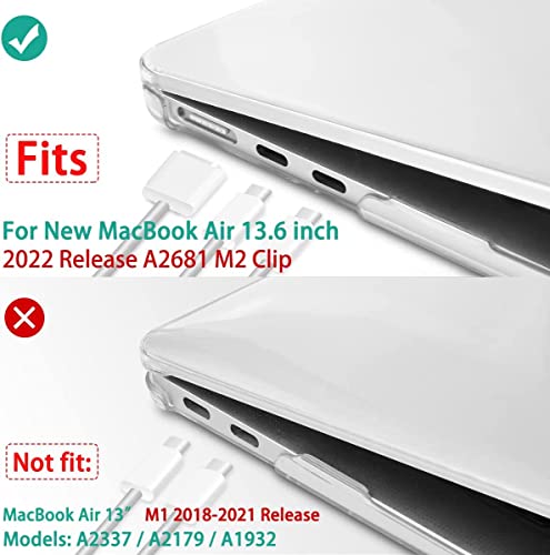- 【Compatibility】This case is designed only to be compatible with MacBook Air 13.6 Inch with Liquid Retina Display & Touch ID, Model M2 A2681, Release 2022 -- MLXW3LL/A, MLXX3LL/A, MLXY3LL/A, MLY03LL/A, MLY13LL/A, MLY23LL/A, MLY33LL/A, MLY43LL/A. WARNING: This case is NOT compatible with other laptop models