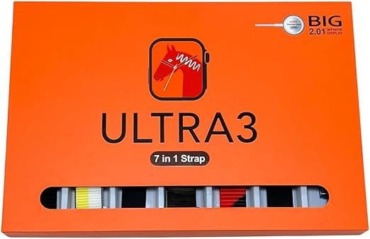 - 4. Wireless Charging Convenience: Say goodbye to messy cables! The Ultra3 supports wireless charging, making it easy to power up your watch with minimal effort. Simply place it on the charging pad, and you’re good to go. 5. 7 Interchangeable Straps: Customize your look with 7 interchangeable straps included in the box. Whether you prefer a sporty, casual, or formal style, the Ultra3 has a strap to match your mood and outfit.