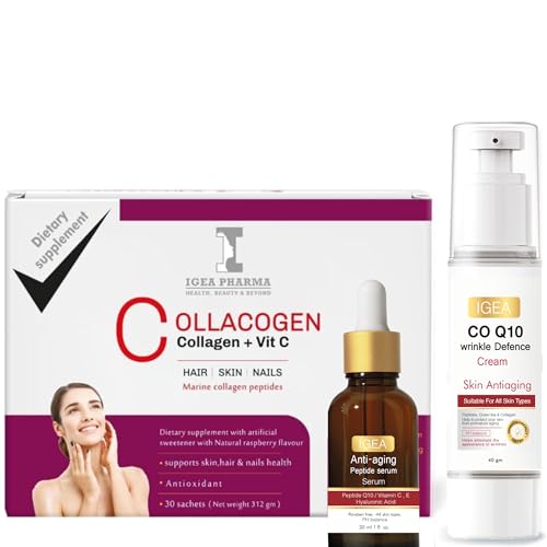 - COMPLETE SKINCARE SET: Features a 30ml Peptide Serum, 40g CoQ10 Wrinkle Defence Cream, and Collagen Supplement with Vitamin C for comprehensive anti-ageing care