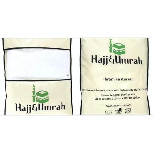 Hajj & Umrah - Ihram/Ehram/Ahram/Muslim toga Towels for Men Hajj and Umrah | New Dry Fast Microfiber Woven Technology | 1000 Grams | 210 x 105 cm | 2 Total Pieces per Unit (top and Bottom)