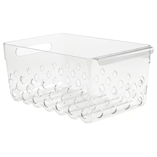 - VERSATILE DESIGN: Crystal-clear storage basket perfectly sized at 30x19x14 cm, ideal for organising fruits, vegetables, and other refrigerated items with maximum visibility