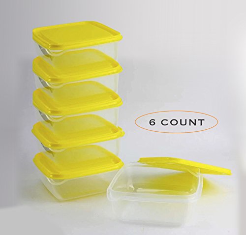 Ikea - IKEA PRUTA Food Storage Square 14x14x2.25 Container 20 oz, 6 Pack BPA-Free Plastic Clear Container, Yellow lid