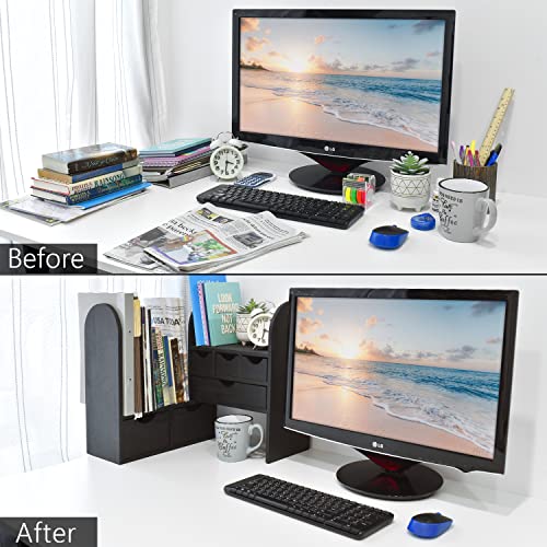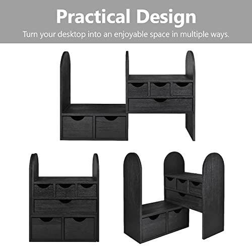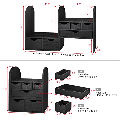 Ikee Design - Ikee Design Large Expandable Wooden Desktop Organizer For Office Supplies, Extendable Book Storage Shelf Rack, Stationary Compartment Holder, Black Color