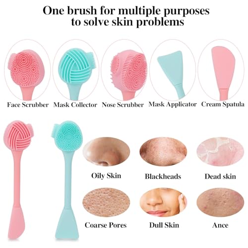 - Face Cleaner Brush- use silicone face scrubber to clean your face. Face cleansing brush silicone combines the 4 functions of facial cleansing, blackheads removing, exfoliation and massage, help make your face-washing experience more effective. Helps soften the skin, promote facial blood circulation, facial exfoliator for women make your skin more smooth and refreshing.