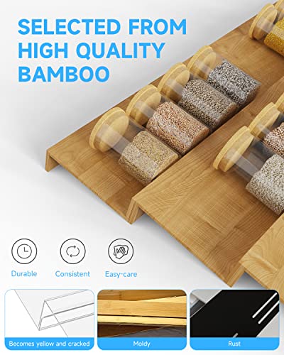 - 【8 Tier Spice Rack】Inclined board design make it easy to locate and quickly grab what you need, comes in Eco-friendly Bamboo and good finished