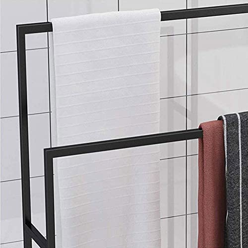 ilbcavne - 40' Tall Metal Freestanding Towel Rack With 4 Hanging Bars Floor Standing Towel Stand Black 2 Tier Towel Holder For Blanket, Quilt, Clothes(Size:85×20×110cm)