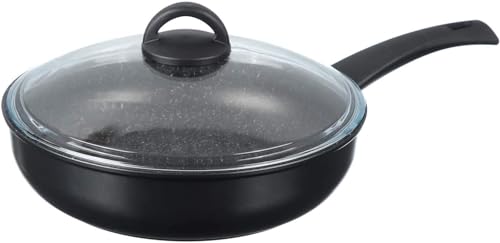 ILLA - مقلاة اي لا كوك اون روك PI6320INP بقطر 20 سم مع غطاء بايركس بسطح غير لاصق لسهولة التنظيف - أسود، متعددة .