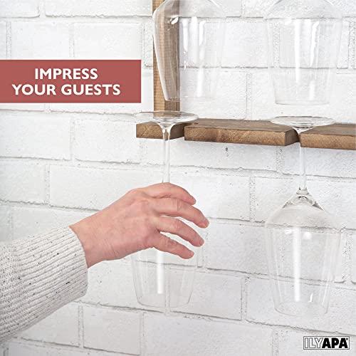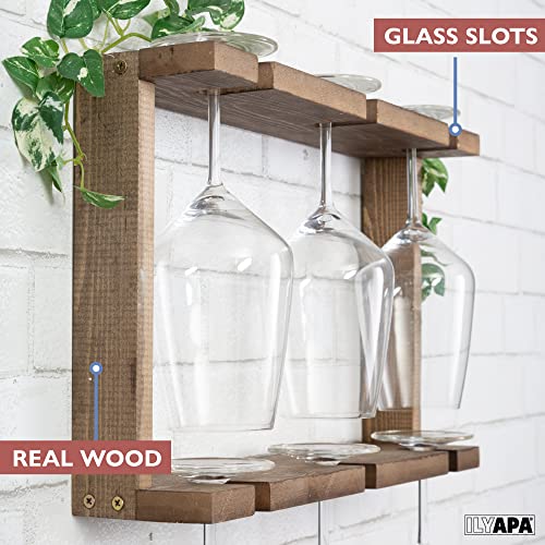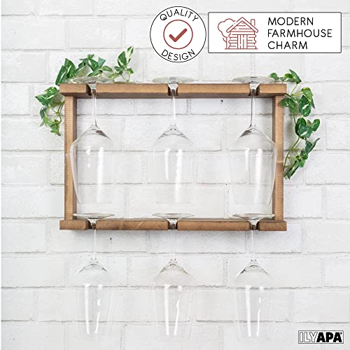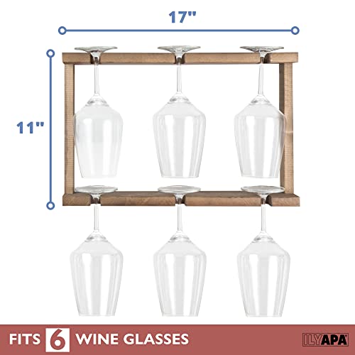 Ilyapa - Ilyapa Wall Mounted Wooden Wine Rack - Brown 2 Tier Wine Glass Holder - Storage For 6 Glasses