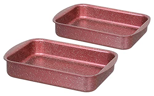 Image Group - طقم صواني فرن جرانيت مستطيلة من ايمدج جروب M52، قطعتين - بينك داكن، زهري