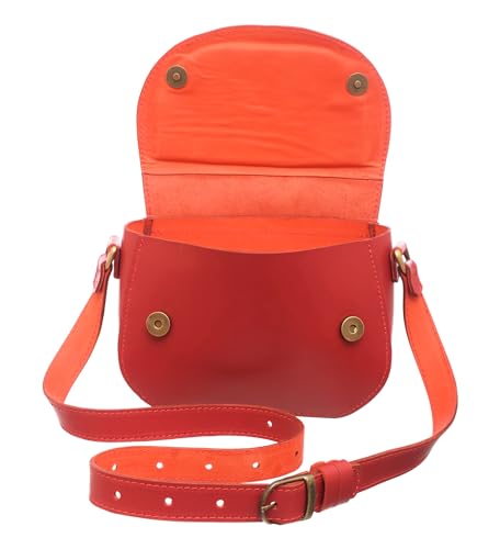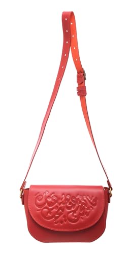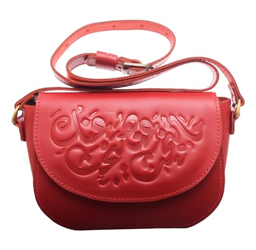 IMAN SOLEMAN - Women's Natural Leather Shoulder Bag with Decorative Design - Red