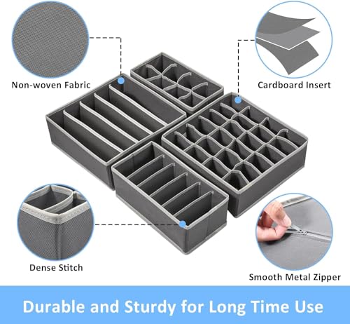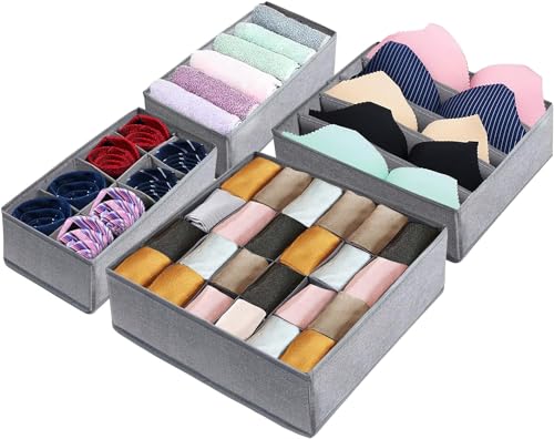 IMLUCKY - IMLUCKY Sock Underwear Drawer Organizer - 4 Pack Foldable Fabric Storage Boxes - Fabric Closet Drawer Divider (Dark Grey)
