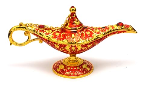 immatgar - مصباح كلاسيك عتيق بتصميم مصباح علاء الدين السحري لتزيين طاولة الزفاف والمنزل، لون ذهبي وأحمر بعرض 12 سم