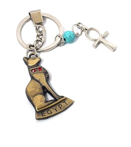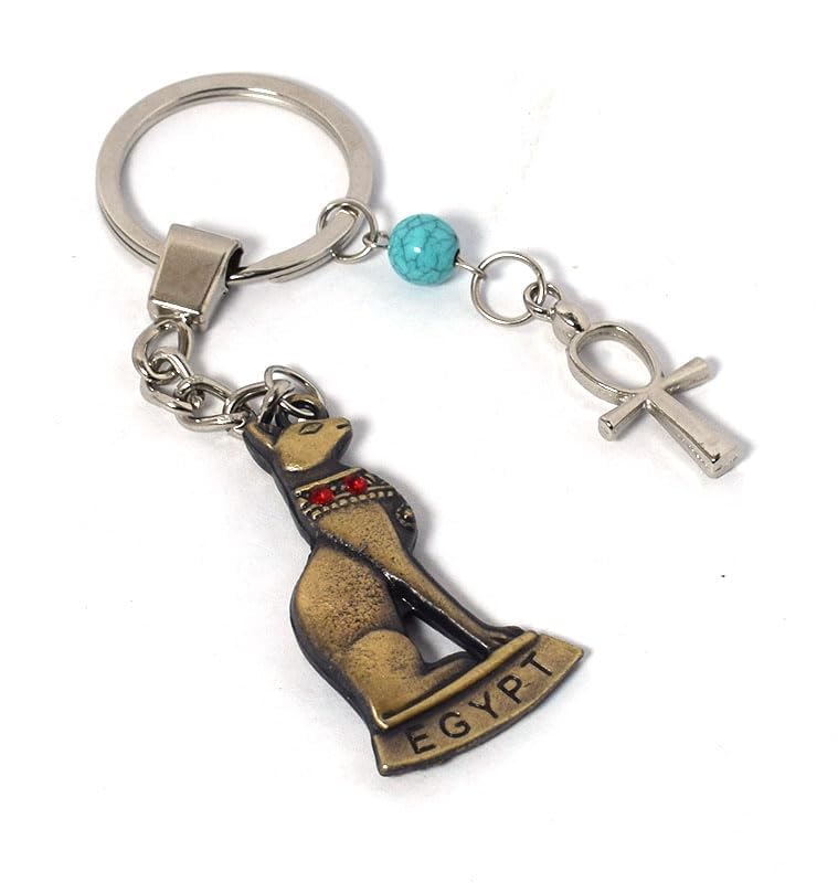 immatgar - immatgar pharaonic bastet cat keychain Egyptian souvenirs gifts from egypt Authentic Pharaoh Burnt Yellow with ankh key, One Size