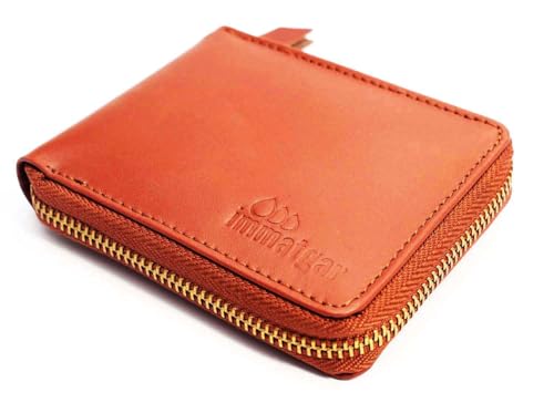 immatgar - محفظة وحامل كروت من جلد البقر الفاخر للاستخدام الشخصي والإهداء للرجال من ايماتجار، (لون هافانا، محفظة بسوستة للإغلاق)