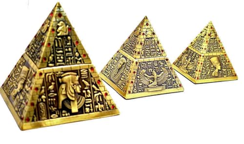 immatgar - immatgare pharaonic Egyptian Jewellery Storage 3 Pyramids ancient Egyptian souvenirs gifts from Egypt Collectible Pharaohs (Burnt Yellow - 10.5 CM Long)