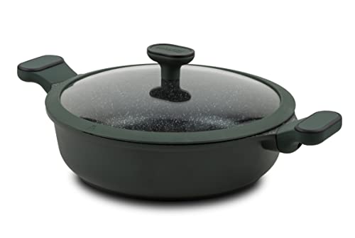 NAVA - كسرولة مسطحة بغطاء من الألومنيوم المصبوب بطلاء جرانيت مانع للالتصاق مقاس 26 سم من امبريال