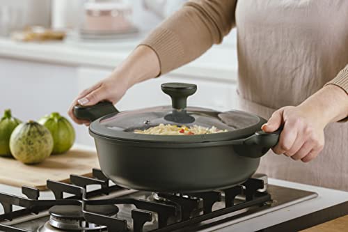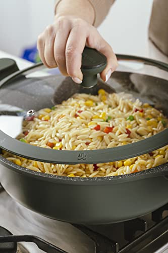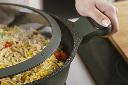 - غطاء زجاج بفتحة تهوية: يحتوي الغطاء على مقبض مريح ومقاوم للحرارة وفتحة تهوية تسمح بخروج البخار. حلة الطهي بالغطاء مصنوعة للطبخ على نار هادئة والطهي ببطء والغلي للحصول على وجبات صحية ومليئة بالنكهة.