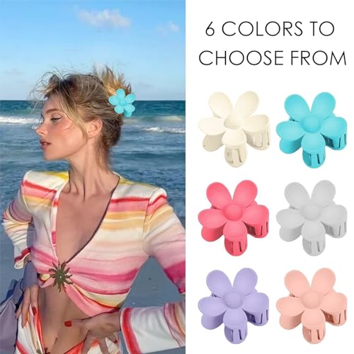 Impoditiongs - Pack of 6 Matte Flower Hair Clips, Flower Shape Non-Slip Hair Clips, Plastic, Women Girls Hair Clips, Non-Slip Hair Claw, Petal, Large Claw Clips for Women, Thick/Thin Hair, 6 Colours