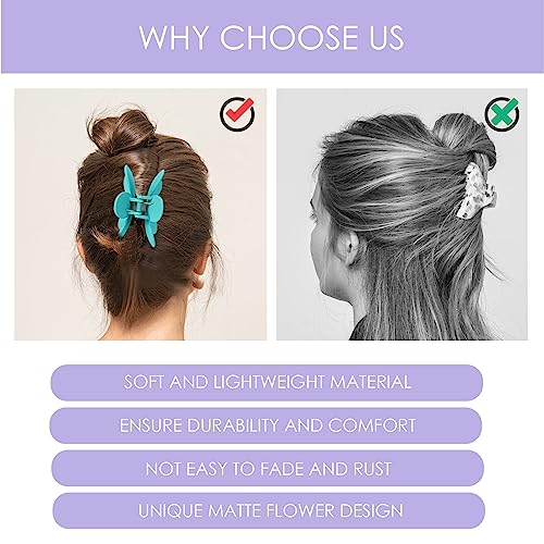 - 6 colour hair claw set: you will receive a total of 6 different colours matte flowers large hair clips, which are sufficient for your daily needs. Multiple colours to match your different outfits and styles, makes them more charming and elegant.