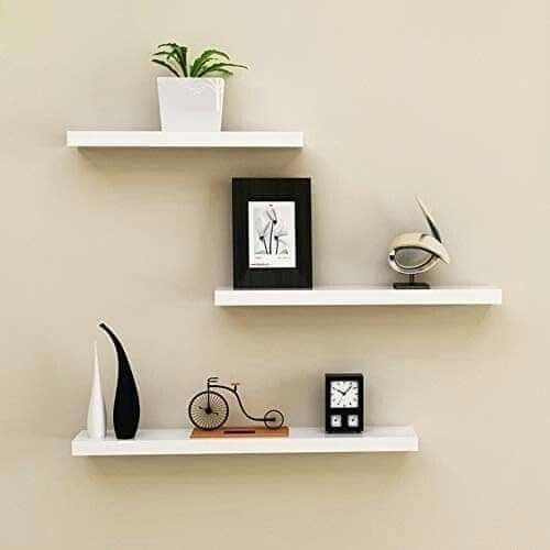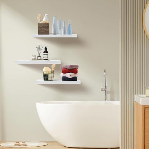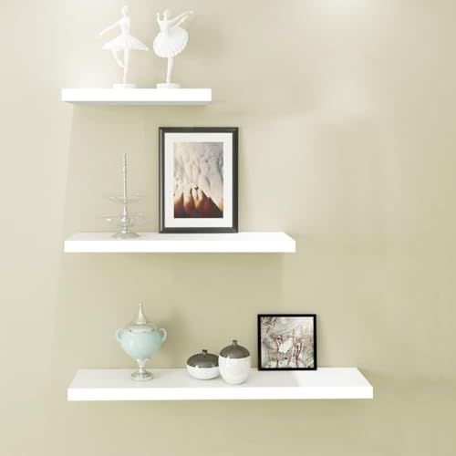 Generic - ارفف عائمة بيضاء مستوردة للحائط، مجموعة من 3 قطع، 60 سم - 50 سم - 40 سم، رفوف بيضاء لديكور المنزل، رف عائم يثبت على الحائط لغرفة المعيشة وغرفة النوم والحمام والمطبخ