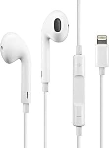 Generic - سماعات داخل الأذن سلكية موصل نوع L (تعمل مباشر بدون بلوتوث) تحكم مدمج في مستوى الصوت وميكروفون - أبيض .