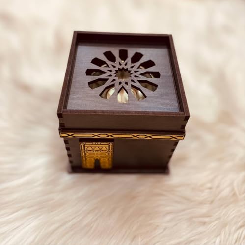 - Incense Burner Kaaba Shape – Wooden Elevate your space with this unique wooden incense burner shaped like the Kaaba that fills your home with rich aromatic smoke from bakhoor or oud, creating a welcoming atmosphere for guests and family.