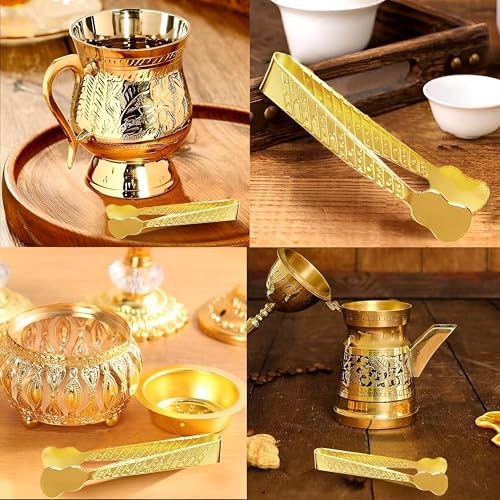 - Adorned with a luxurious gold finish and delicate floral engravings, the tongs combine aesthetic elegance with practical utility, enhancing the ambiance of any space.