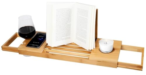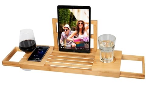INDA-Exclusiv - Bath Shelf Bath Shelf Adjustable Bath Board Made of Bamboo Wood Ecologically Sustainable - Non-Slip Bath Shelf Holds Book, iPad, Phone, Glass or Candle etc.