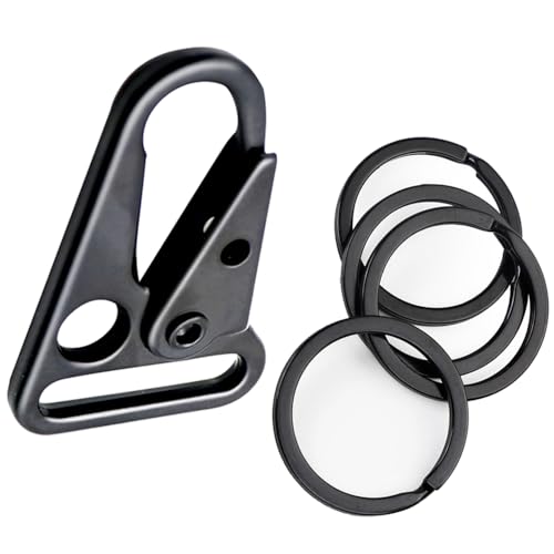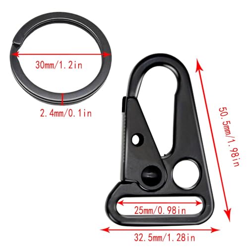 IndependentThose - 12 Pieces 1 Inch Enlarged Mouth Clip Sling Clasp Hook for Keychain Snap Hooks Outdoor Bag Backpack Tactical Carabiners ((Sling Clip + Key Ring) 1" Black (12-Pack))