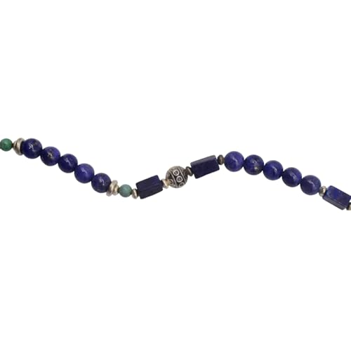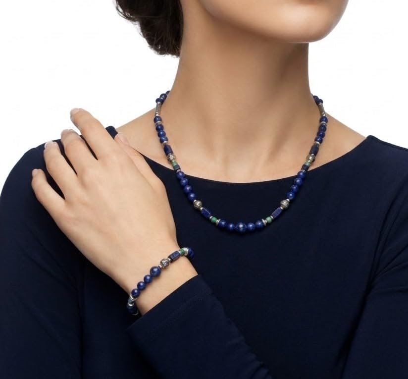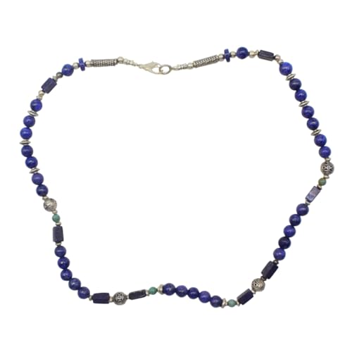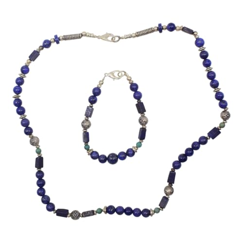 Indian Stones MA - طقم عقد وانسيال هندي فاخر من الفضة المخلوطة بالنحاس اقل من العيار مرصع بأحجار طبيعية كريمة من الفيروز ولابس لازولي، قطعتين - تركواز ازرق Set-2-G