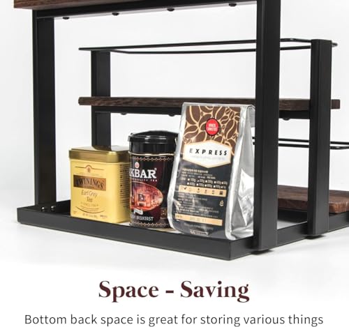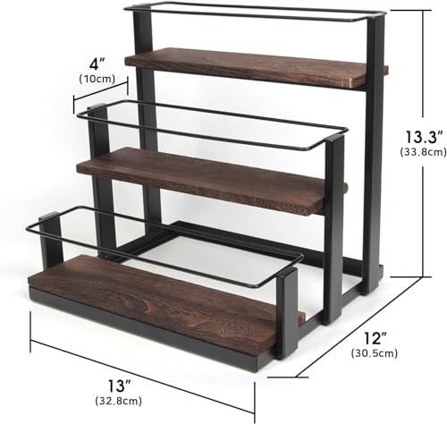 INDIDECOR - 11138 Coffee Syrup Organizer Rack, Rustic Wood and Metal Wire, 3-Tier 12 Bottles Compartment Display Holder Coffee Station Bar Accessory for Syrup, Wine, Dressing(Black)