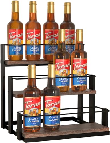 - [SYRUP BOTTLE STORAGE RACK]- 3 Tier syrup bottle caddy will help display and store coffee syrups , drink syrups, wine bottles in one place. It accommodates up to 12 bottles, 4 standard syrup bottles one each tier ensuring easy reach and visibility making ideal for finding them when needed