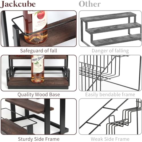 - [SPACE SAVER]- Staircase design display riser helps save and eliminate clutter of bottle collection from your counter tabletop, coffee tables and pantry space in your kitchen, restaurant, café. Making it easy to visualize the bottles and getting them organized in one place. Comes at the perfect size of 13.3" X 13" X 12", each tier depth of 3.6"