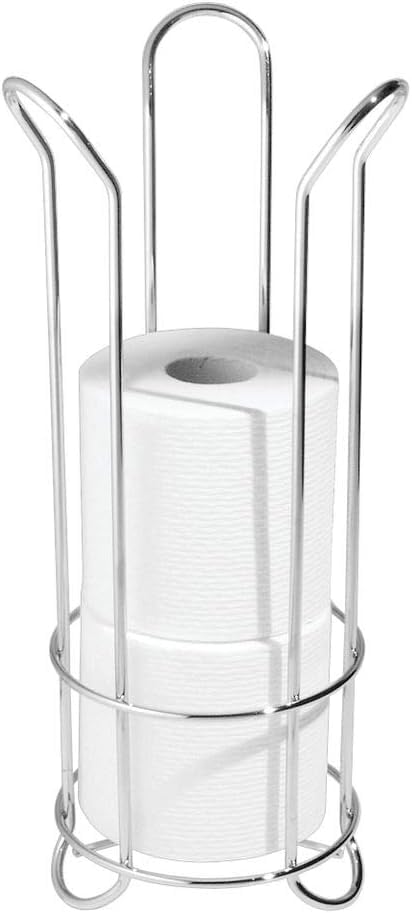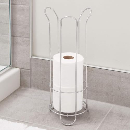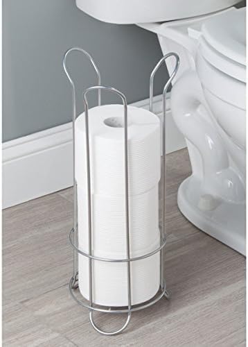 - DURABLE & STYLISH - The freestanding toilet tissue holder is made of high-quality steel construction for extended use, and the silver finish and flared wire design matches any bathroom decorations or bathroom set