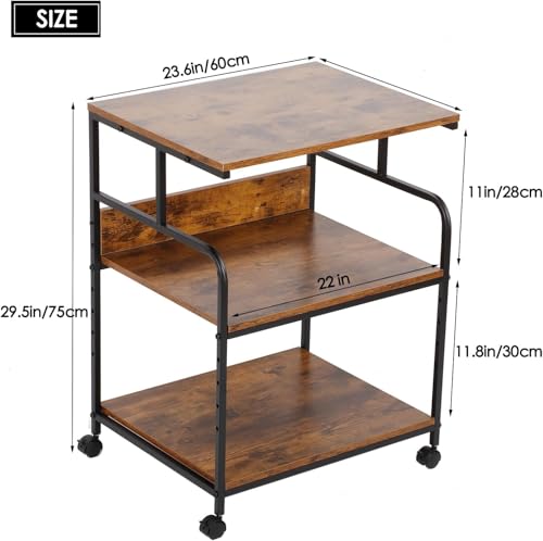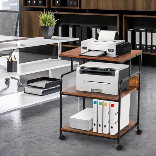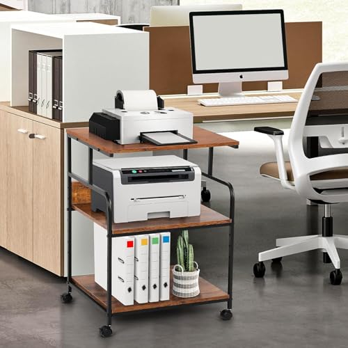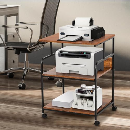 INDIDECOR - حامل طابعة موفر للمساحة من 3 طبقات مع عجلات من انديكور، طاولة طابعة دوارة كبيرة مع رف تخزين قابل للتعديل، عربة دوارة مع رف تخزين ورق لتنظيم المنزل والمكتب 57158