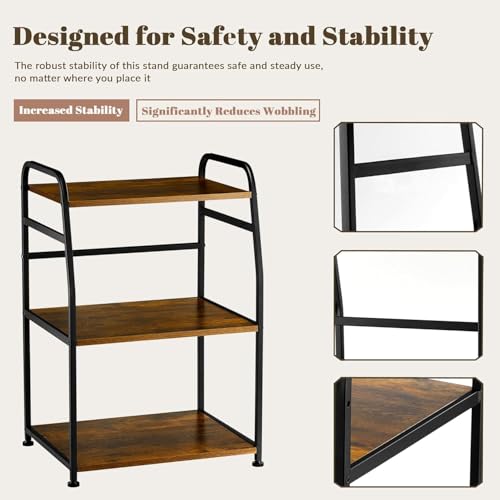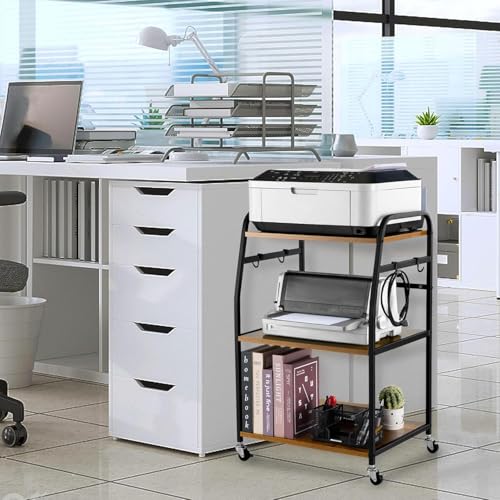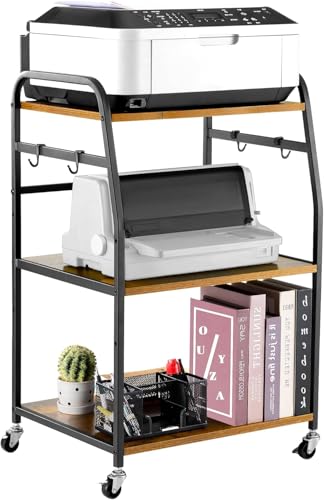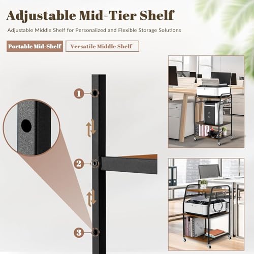 INDIDECOR - 57159 Printer Stand - Large 3 Tier Printer Table with Adjustable Storage Shelf - Rolling Printer Cart with Wheels -Stable Desk for Printer Home Office Use (Rustic Brown)